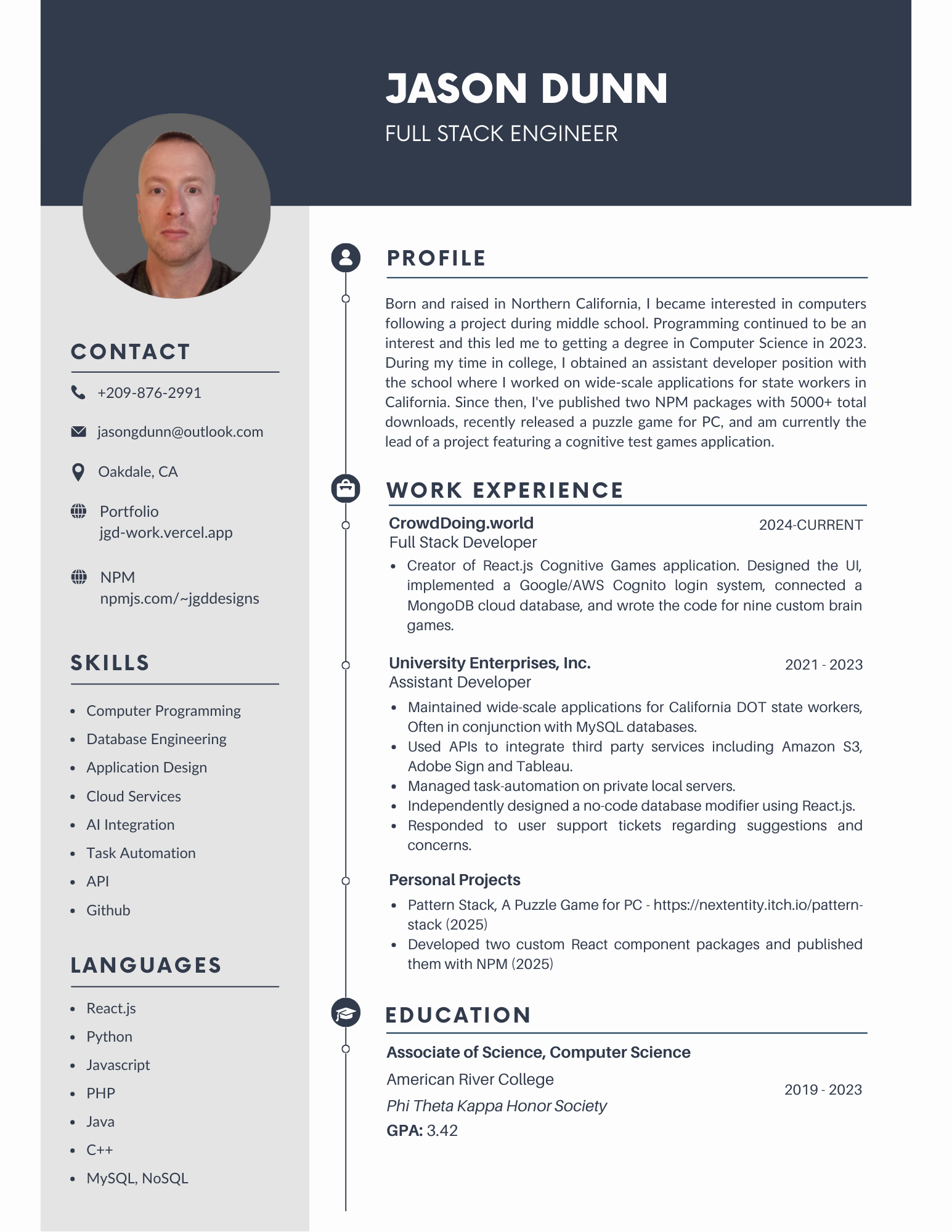 During my internship at University Enterprises in Sacramento, CA, I was assigned to the construction branch of the California DOT. There, I started learning the structure of existing apps that had already been written for the state. For the first month or two, I made commits mostly involving small UI adjustments or bug fixes. This was based on requests from our managers given during weekly video meetings. Eventually, I was able to contribute more advanced improvements and went on to become the lead designer of a React application.